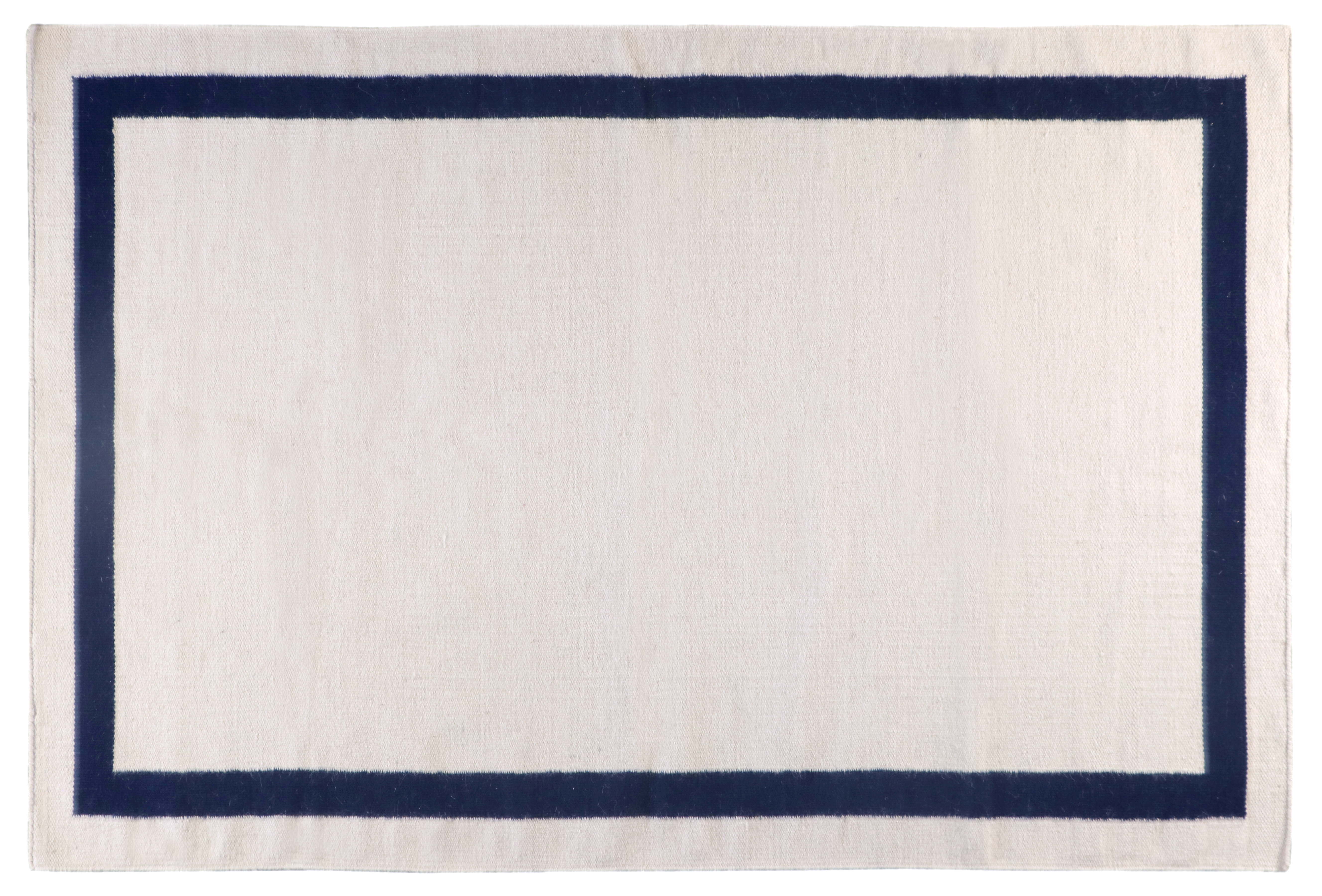 couleur bleu marine. Ce tapis à tissage plat est tissé dans la région rurale de