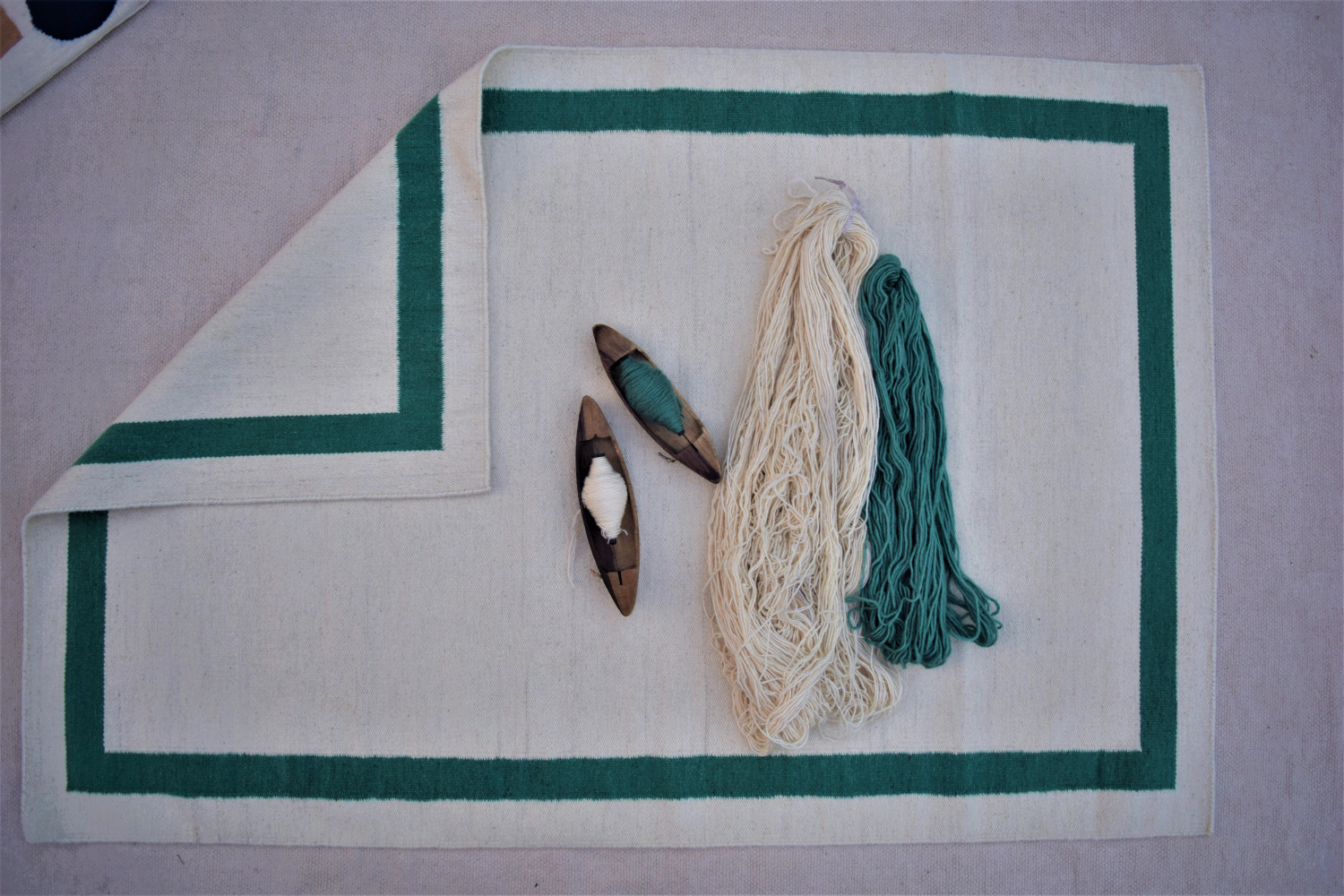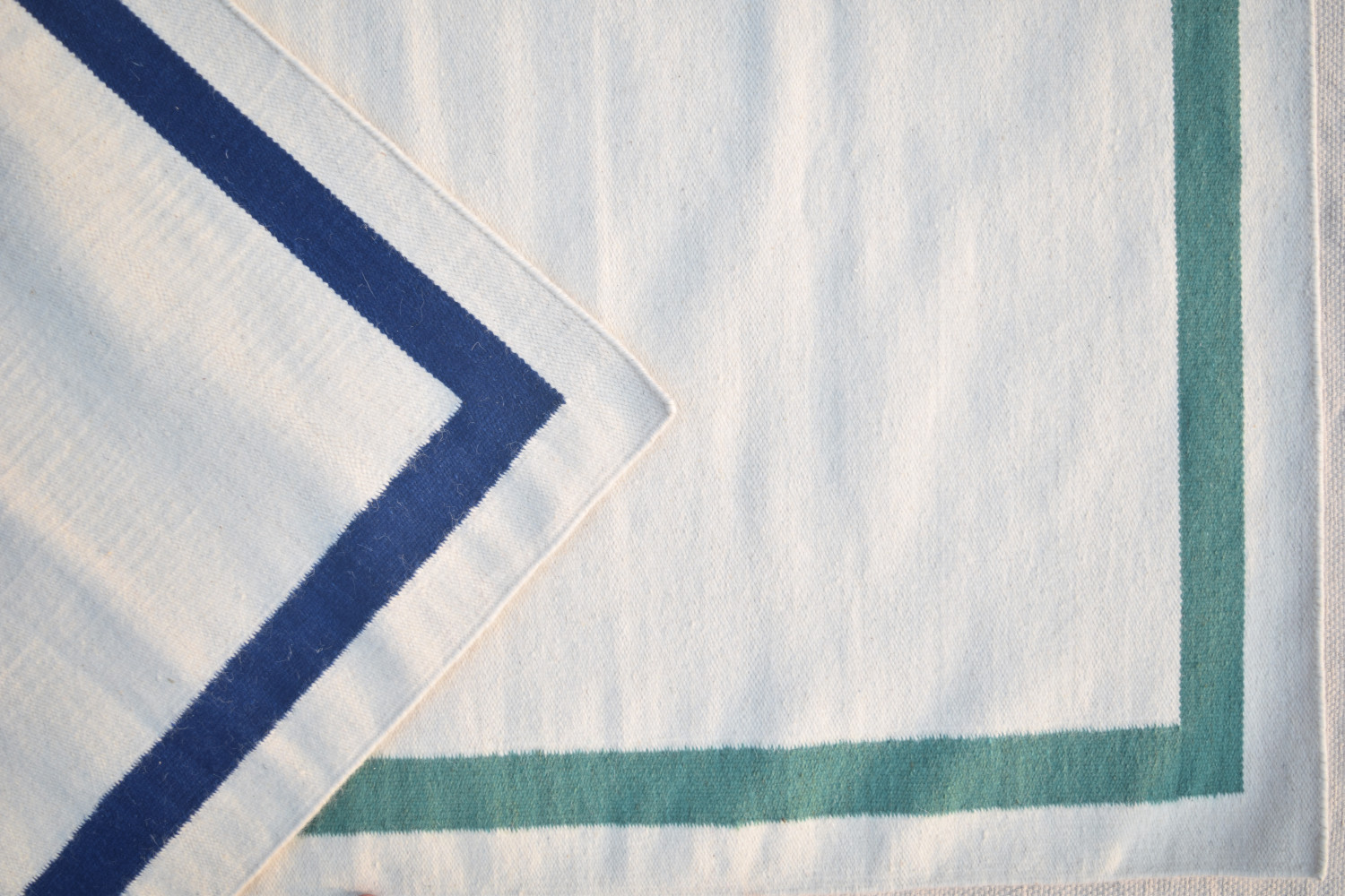 La particularité de ce tapis est sa simplicité. Fabriqué avec la meilleure qualité de laine combinée avec de l'écru naturel et bordé de couleur Menthe. Ce tapis à tissage plat est tissé dans la région rurale de Bhadohi, dans le nord de l'Inde. Nos produits sont fabriqués par des artisans hautement qualifiés qui sont impliqués dans ce métier depuis des générations. Chaque pièce est fabriquée avec le plus grand soin et patience pour s'assurer qu'elle est à la satisfaction de nos clients.