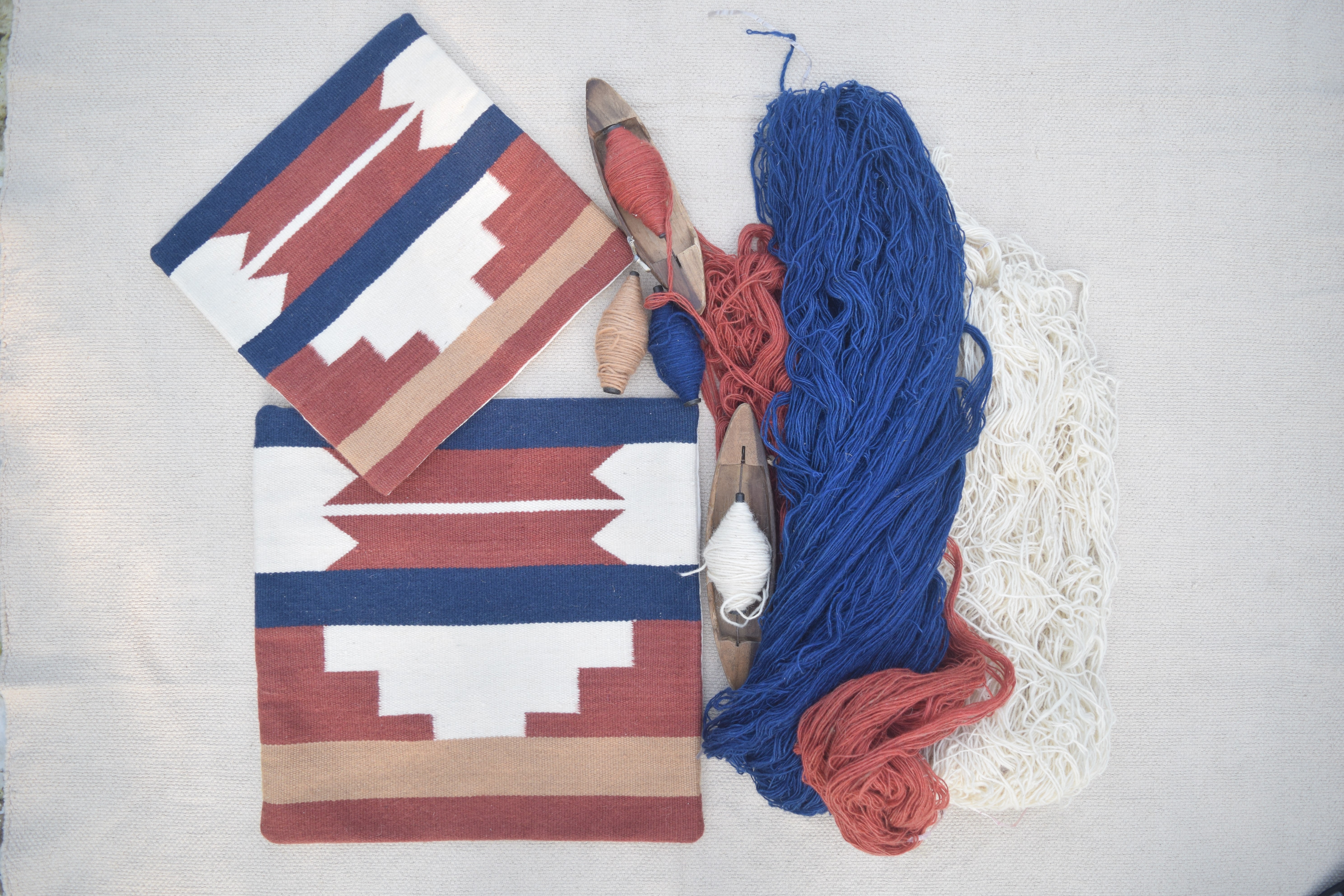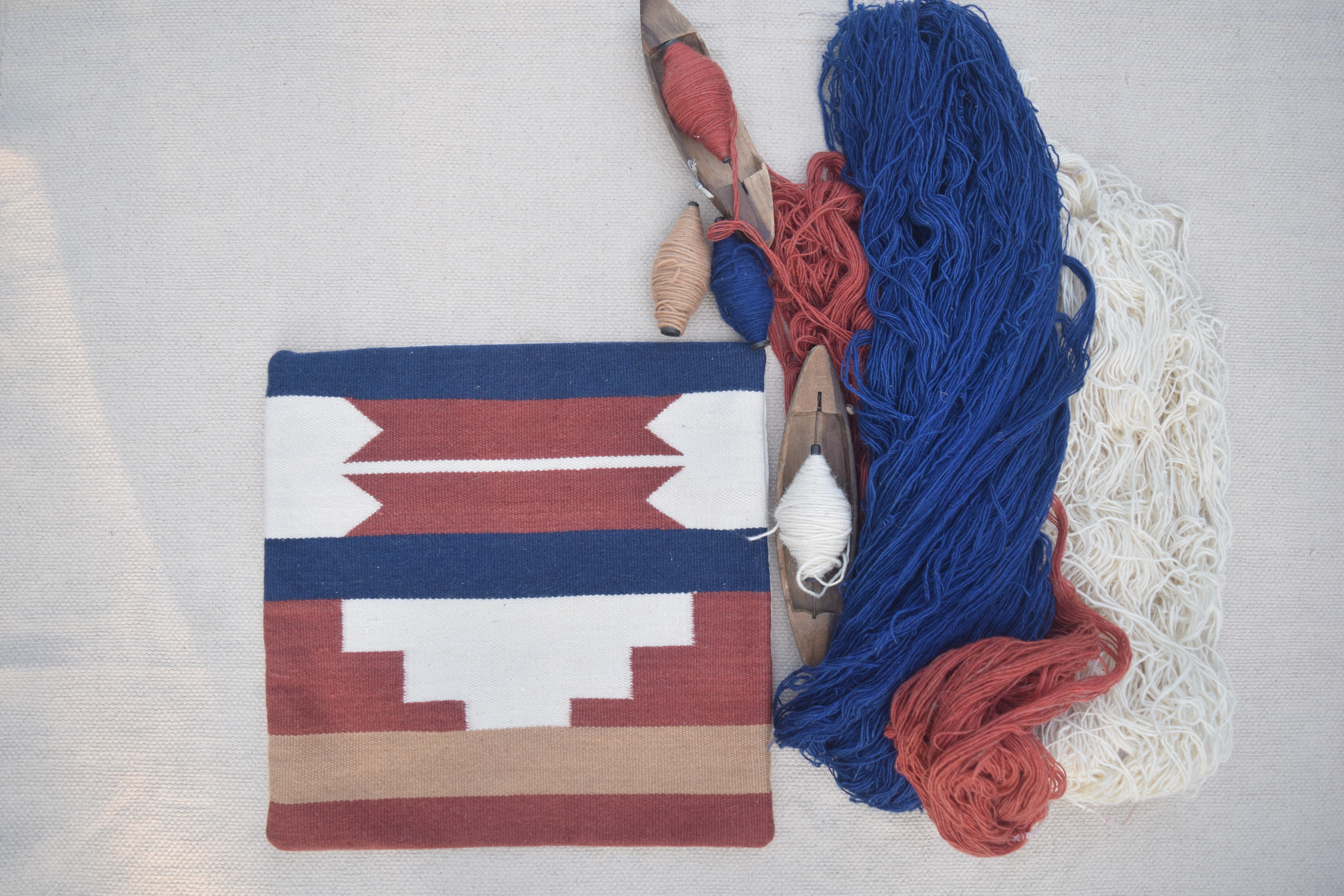Les coussins sont conçus à Grenoble, en France et tissés à la main à Bhadohi en Inde du Nord. Les coussins sont tissés à la main dans un motif de tissage plat par certains des artisans hautement qualifiés de Bhadohi, ils sont impliqués dans cette profession depuis des générations.